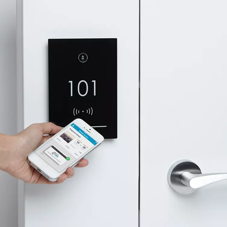 Allure consists of various wall panels based on VingCard's RFID locking platform, giving designers freedom of choice with a state-of-the-art design-centric hardware and software solution. Allure integrates VingCard's most advanced contactless locking solutions into its interior electronics, including Radio Frequency Identification (RFID) compatible locking technology, as well as full compatibility with the Visionline online solution. With the ASSA ABLOY Global Solutions Mobile Access solution, you can open your hotel room using your cellphone as a key.